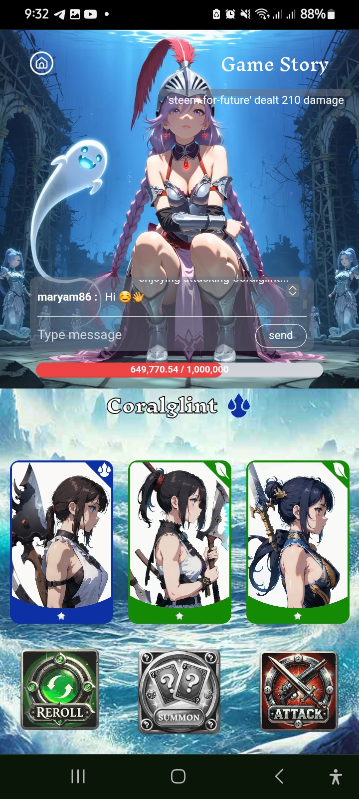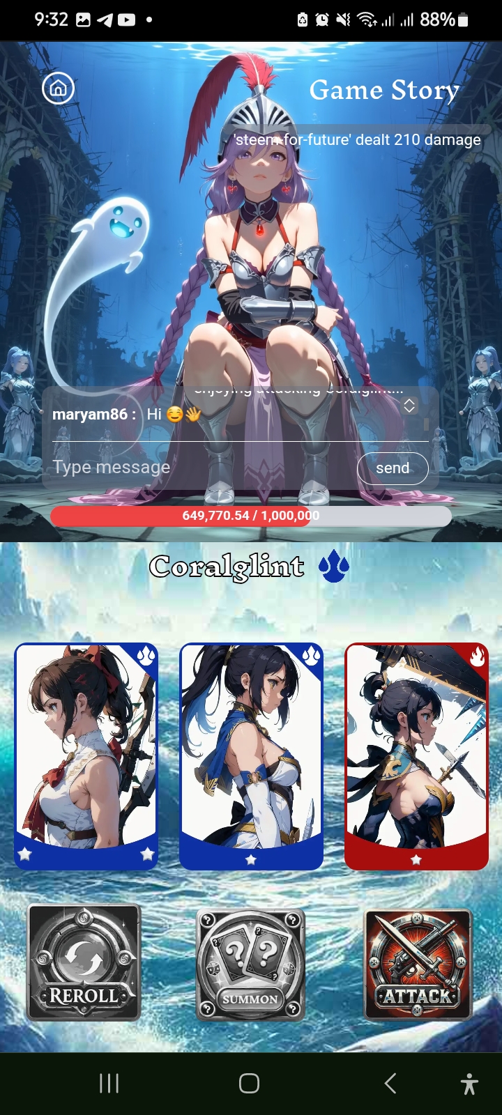 Then the second card came in front of me. In the second card I discovered a legendary card. The second card made me very happy. I attacked and got 210 damage. It was a powerful attack for me.