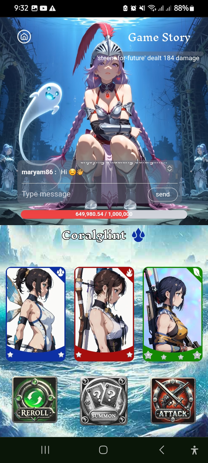 I first clicked on the play option. After clicking on the play option, the first card arrived in front of me. I attacked the first card and I gained 184 damage. I was very happy to attack the first card.