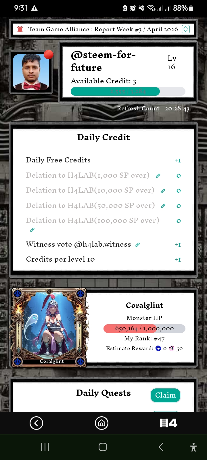 Lastly, I would like to inform you about my status. Currently, I am level 16. I am ranked 32nd in the leader board option. I am very happy to have moved up from 47th to 32nd.