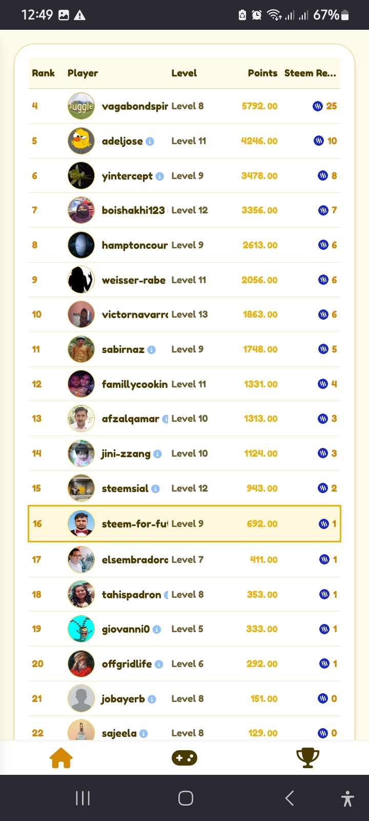 I want to share with you the latest activity of the game today. I finished the game and now I went to the leader board option. After going to the leader board option, I saw many good players. However, I was able to create a certain position for myself.