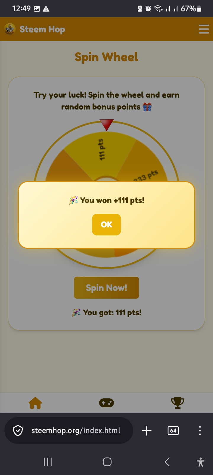 Now I went to the spin wheel option. After going here I said spin and I got +111 PTS bonus for today. Anyway after a long time I did spin and its moment was very happy for me.