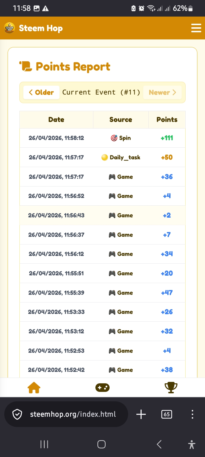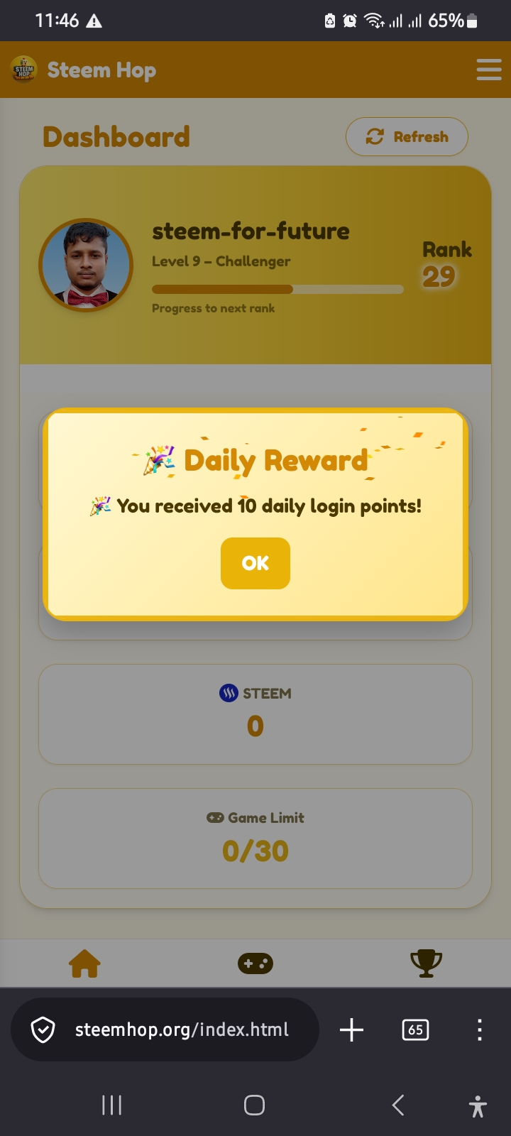 On the 38th day I opened steemhop games. After opening the games, I liked it a lot and I got ten bonuses as login. I like receiving bonuses a lot.