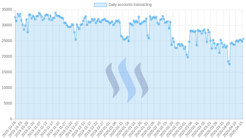 A 'transacting account' is a Steem account that made at least one transaction on the Steem blockchain. This can be a vote, post, comment, transfer, power up or SBD conversion. Users who only read from the Steem blockchain without interacting are not included. The actual number of 'Active users' is therefore much higher than the accounts transacting.