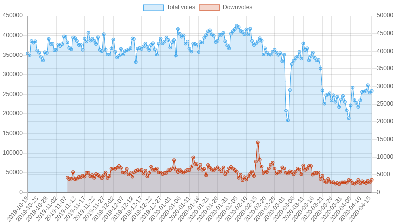| Date | Total votes | Downvotes | Percent downvotes |