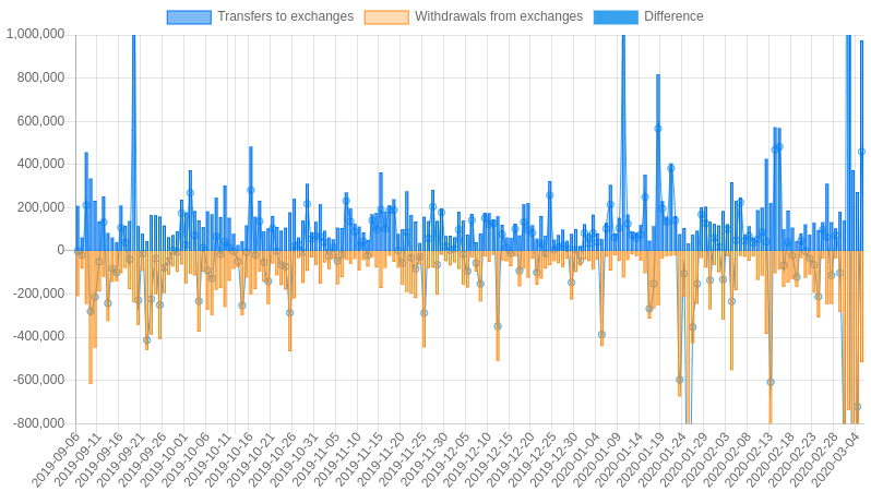| Date | Transfers to exchanges | Withdrawals from exchanges | Difference |
