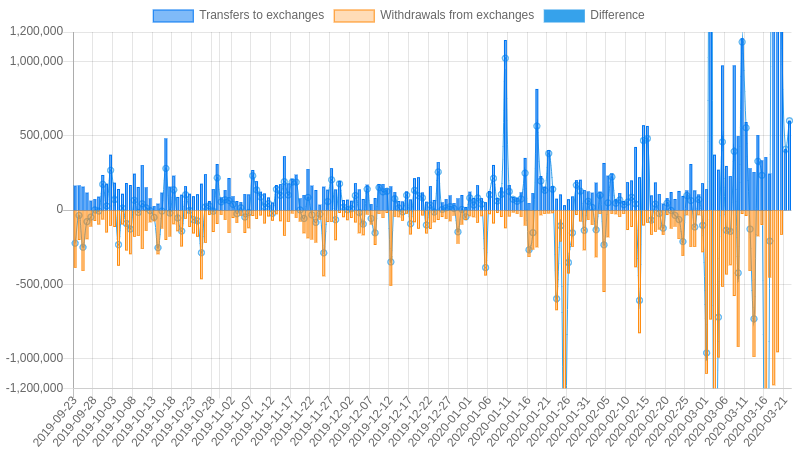| Date | Transfers to exchanges | Withdrawals from exchanges | Difference |
