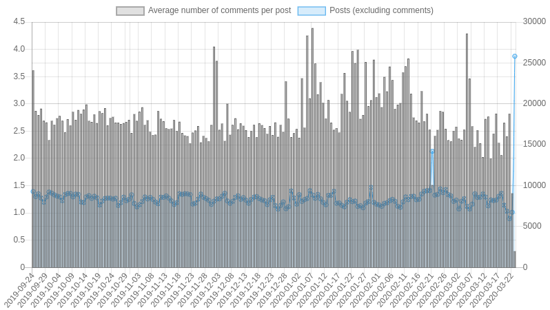 | Date | Average # comments | Posts |