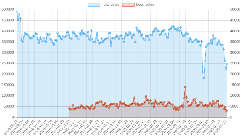 | Date | Total votes | Downvotes | Percent downvotes |