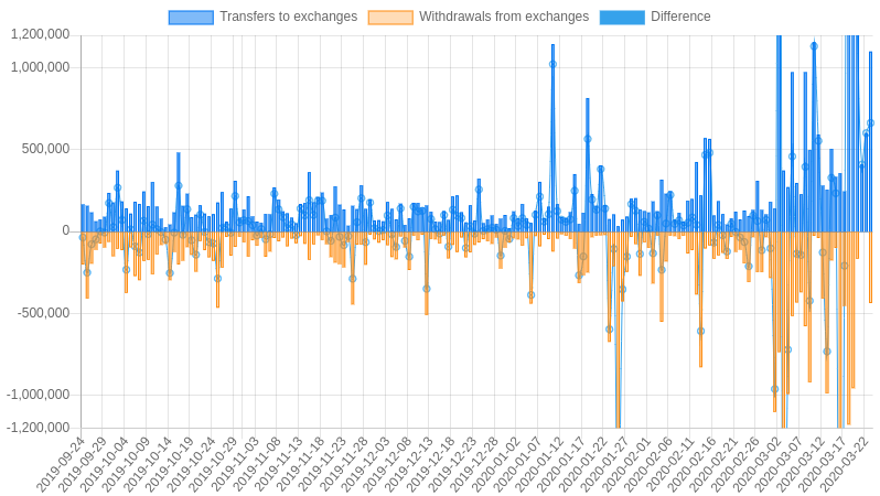 | Date | Transfers to exchanges | Withdrawals from exchanges | Difference |