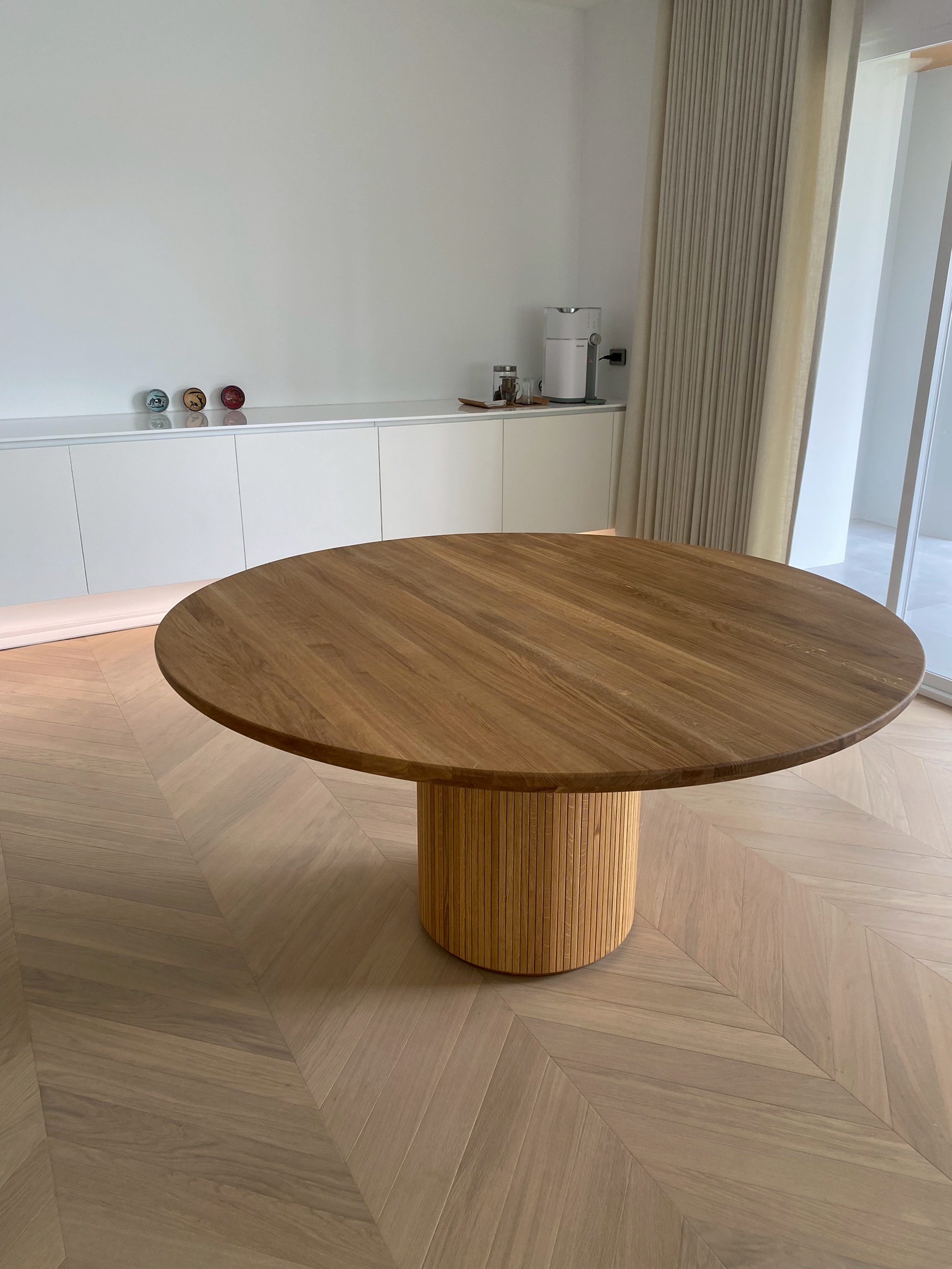 ออกแบบโดย Space Copenhagen ดีไซน์ของ Moon Dining Table D150 ได้แรงบันดาลใจจากความกลมกลืนของดวงจันทร์ ด้วยเส้นสายที่เรียบง่ายแต่ทรงพลัง สะท้อนถึงงานฝีมือช่างไม้แบบเดนมาร์กดั้งเดิมที่ผสานเข้ากับความทันสมัยได้อย่างลงตัว