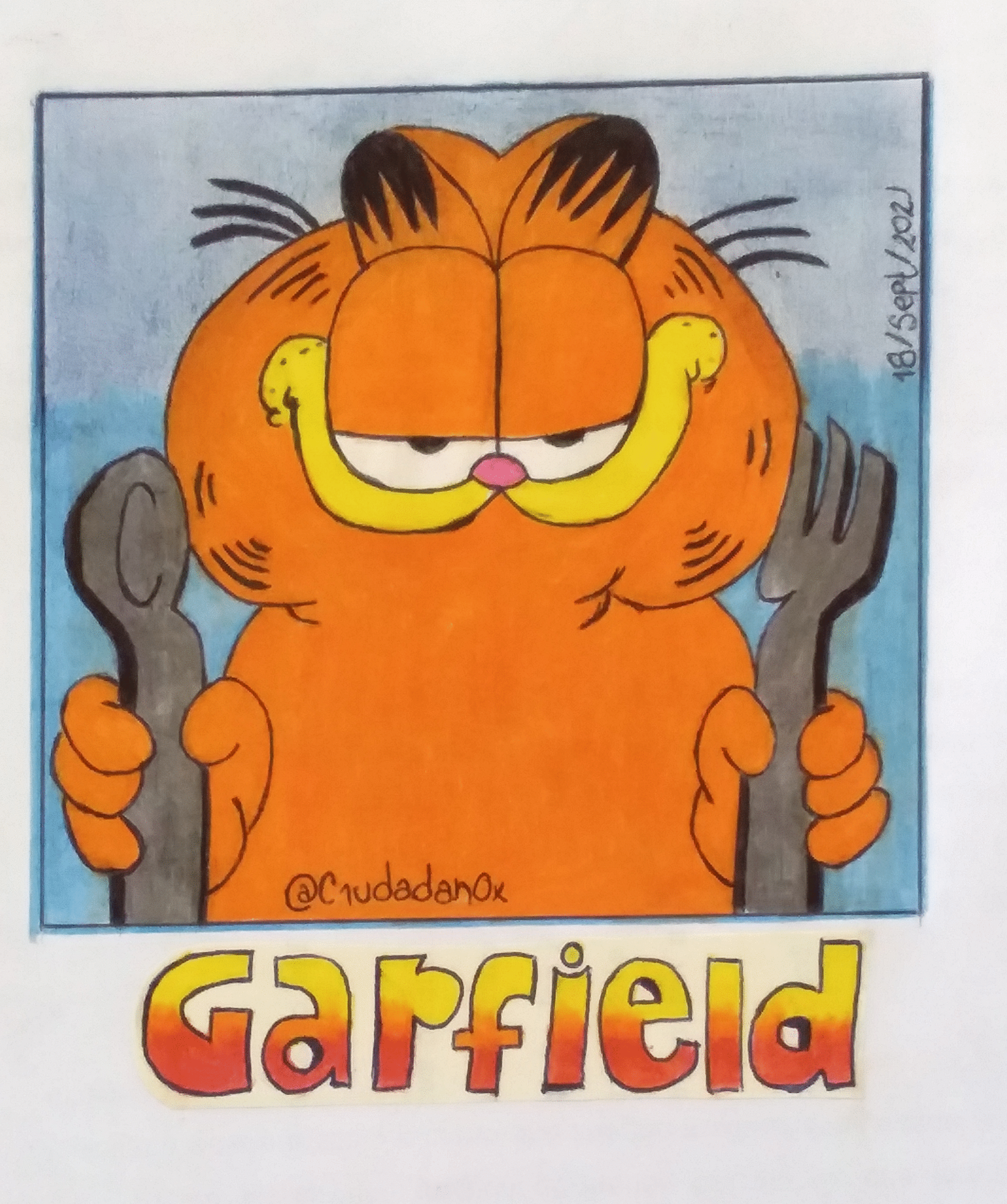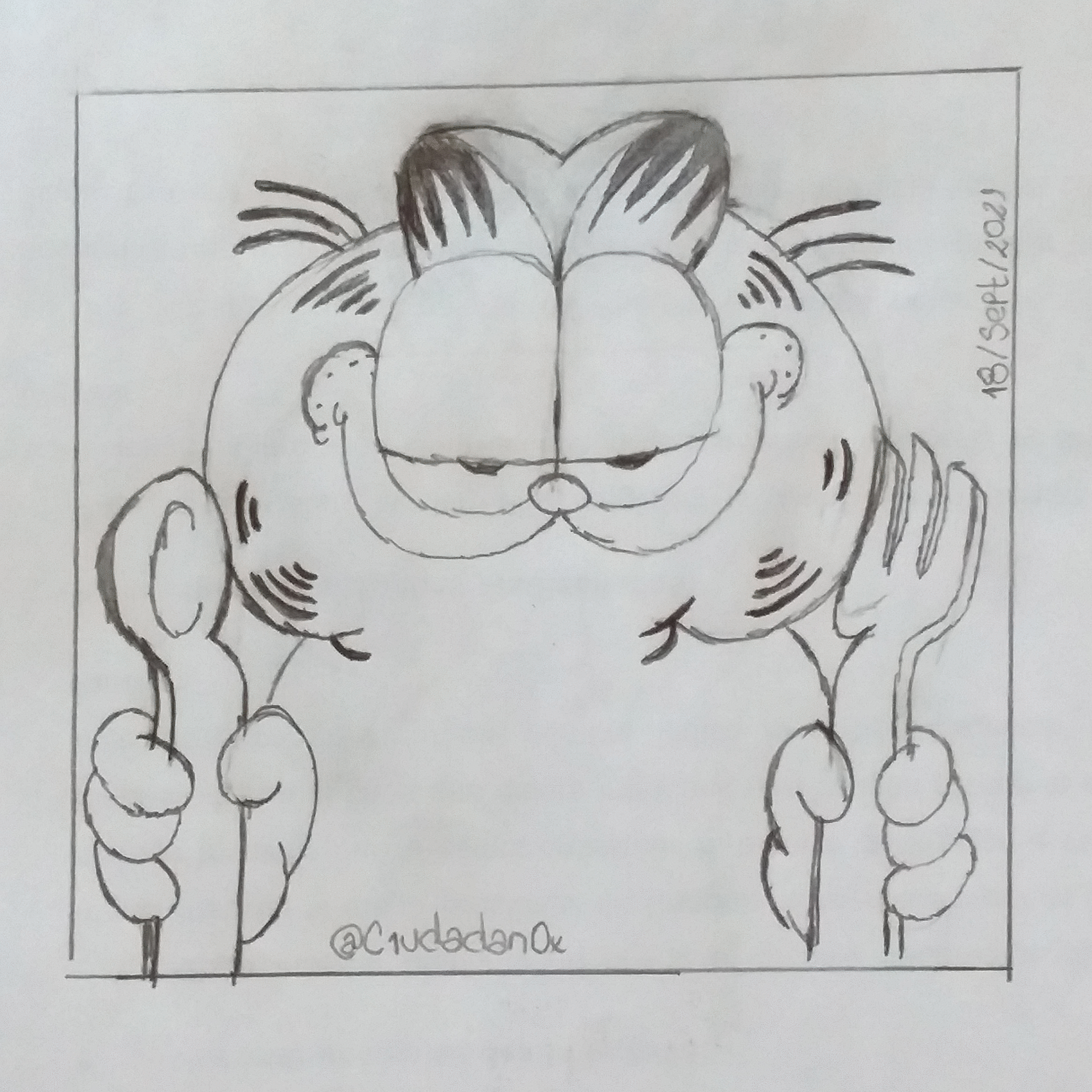 Saludos a toda la comunidad de Steemit, en esta ocasión compartiré un nuevo dibujo; esta vez retraté a Garfield, personaje creado por Jim Davis