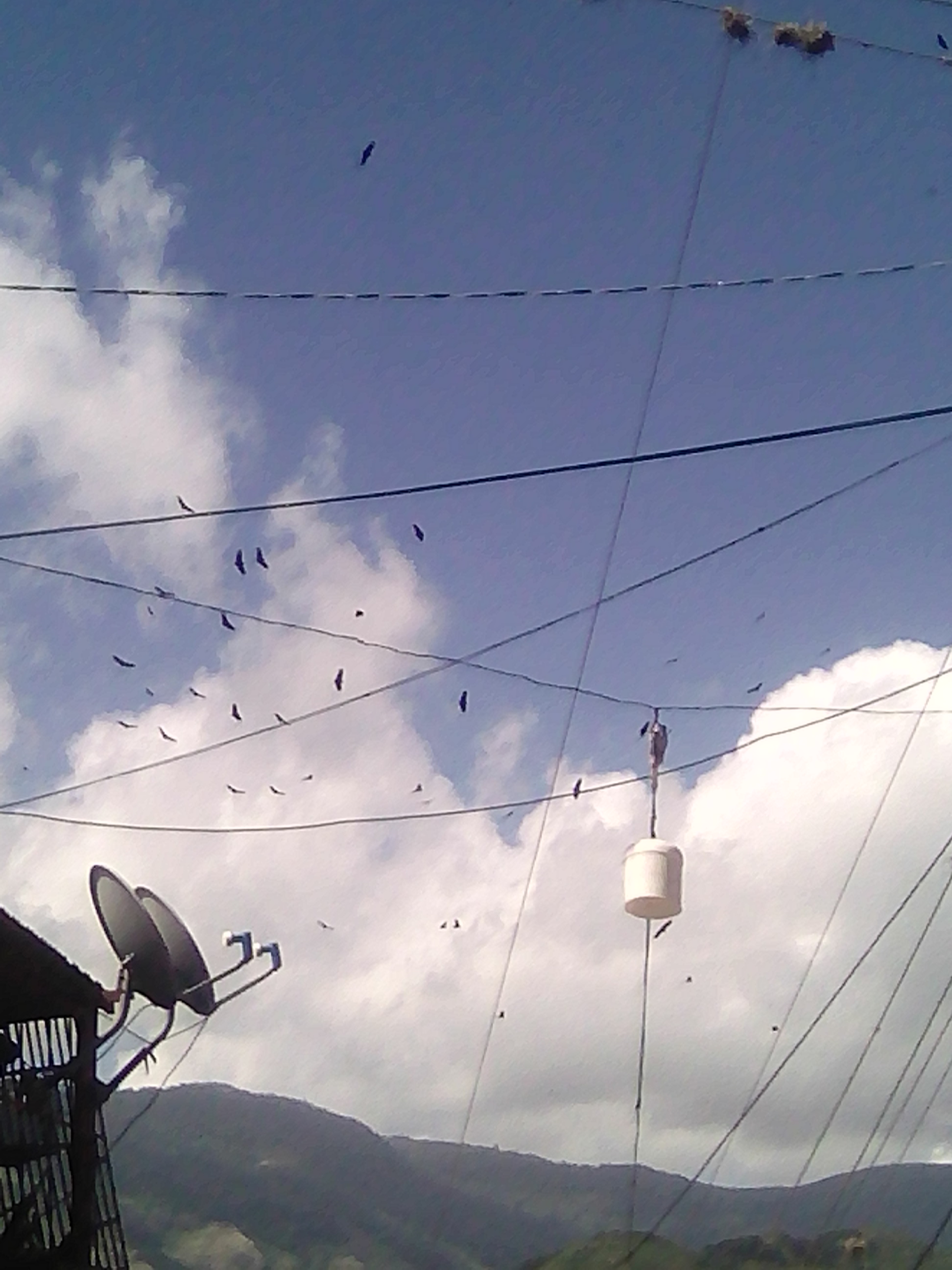 Hola saludos! El día de hoy me levante un poco tarde me asie y salí ah limpiar el patio de mi casa, mire al cielo y vi muchos zamuros en el cielo el cual mis hijas disfrutaron al verlo, ellas les llaman pájaros jajajajajajajaja..