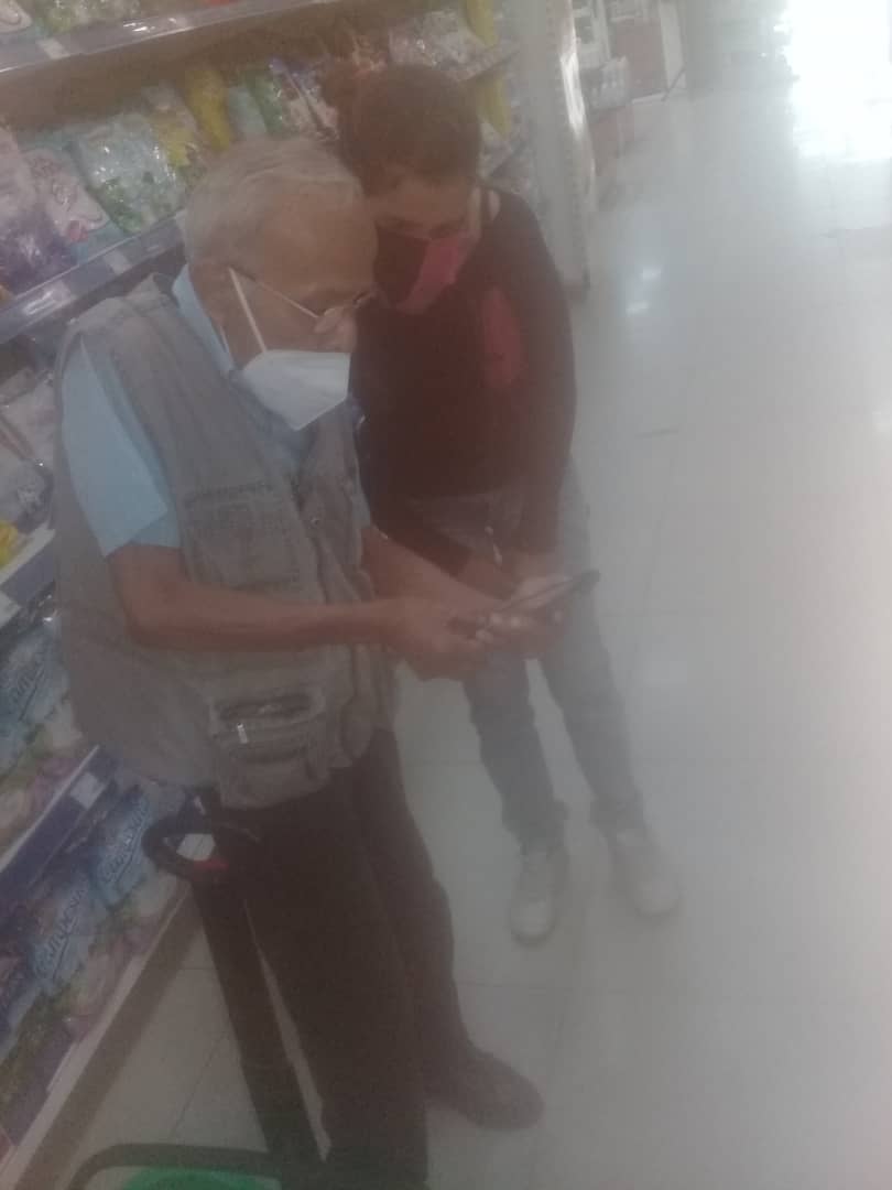 Ayudando a un sr a sacar su cuenta, foto capturada por @monasterios con su celular Samsung Galaxy J2.