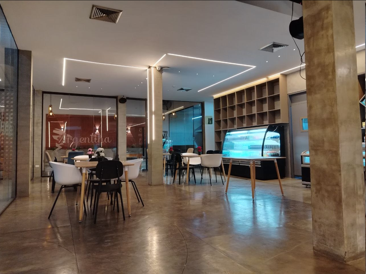 Durante el día en la parte de abajo funciona como panadería y delicatessen para comer desayunos de los países del sur y postres bien hechos, muy bueno para darse un gusto diferente. Ademas las instalaciones ofrecen alquiler de los espacio para eventos corporativos, artísticos, ver eventos deportivos en las pantallas y demás, es un sitio muy recomendado por su elegancia, dedicación, compromiso y más.