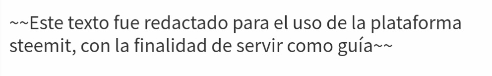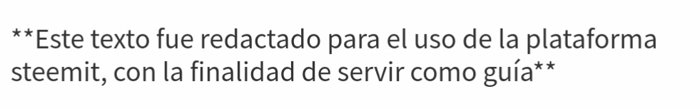 (Inmediatamente debajo colocas el texto)Este texto fue redactado para el uso de la plataforma steemit, con la finalidad de servir como guía