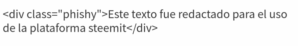 <div class="phishy">Este texto fue redactado para el uso de la plataforma steemit </div>