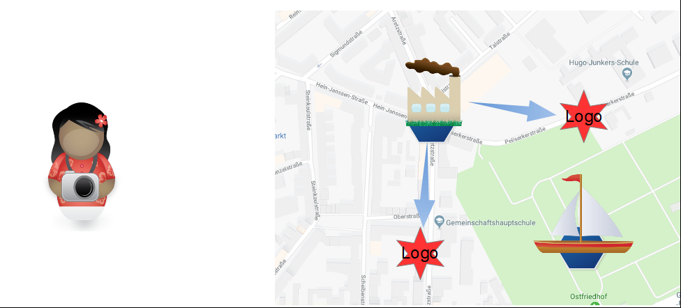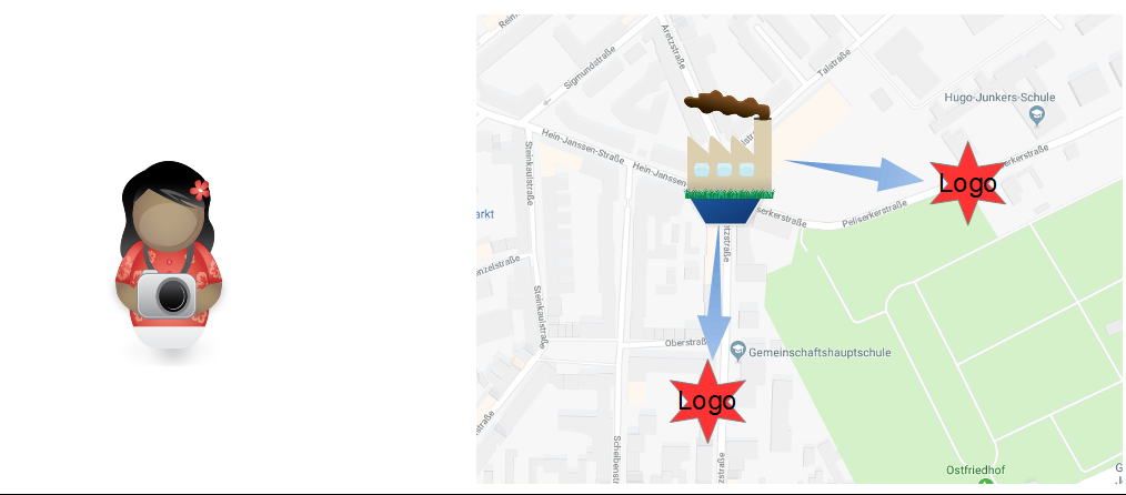 Wir fangen auf einer grünen Wiese an und brauchen nach dem Go Live des Spiels eine Mindestmenge an Mitspielern (daher muss die Einstieghürde gering sein). Es können von Anfang an Sponsoren dabei sein, die Grundstücke der Spieler abkaufen und auf dessen Fabriken Werbelogos herstellen. Diese können dann in der Augmented Reality für jeden Spieler sichtbar sein und eingesammelt werden. Für den Werbetreibenden bietet sich der riesige Vorteil, dass sein Produktname positiv konnotiert wird.