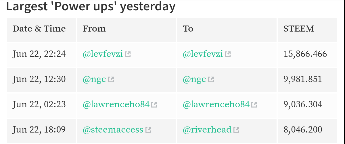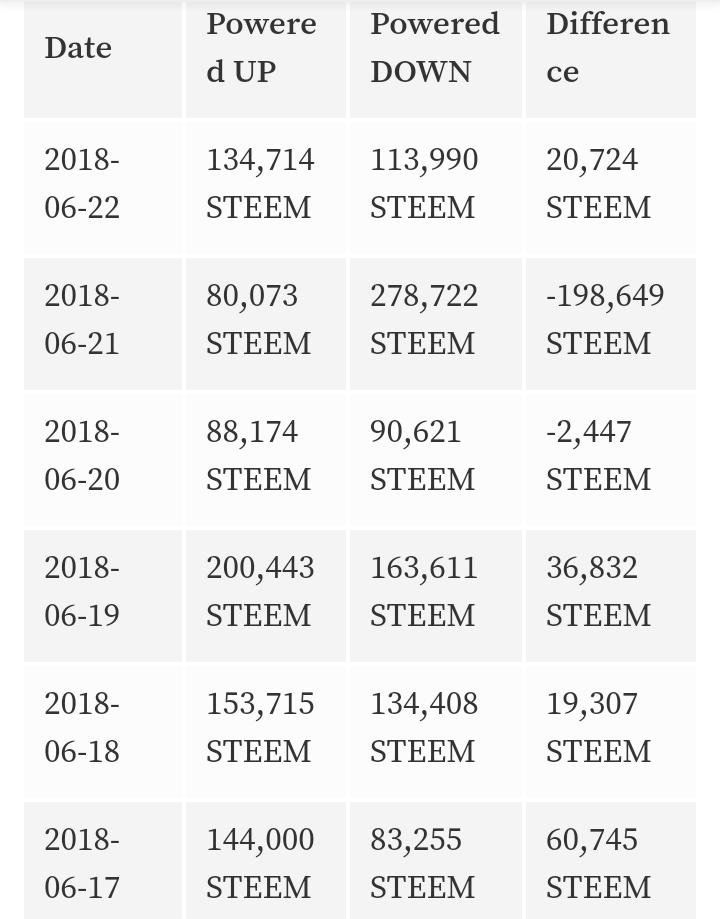 Daily Amount of Steem Powered UP & DOWN:
