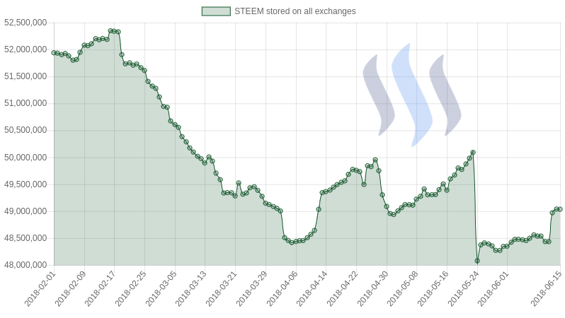 How much STEEM is stored on the exchanges: