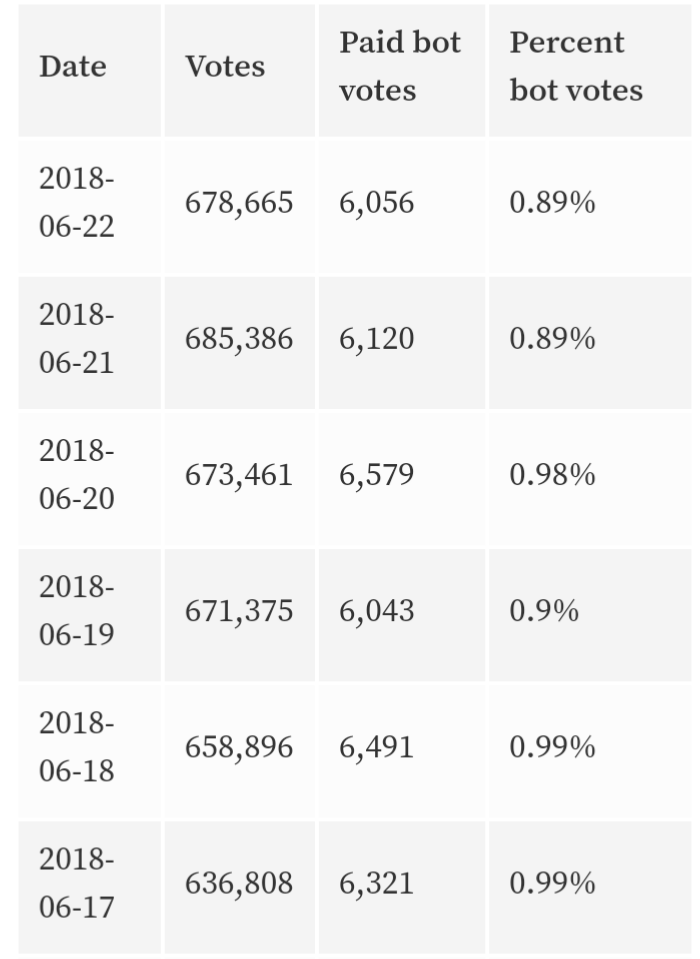 Daily Number of Votes:
