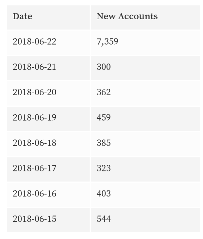 Daily Accounts Created:
