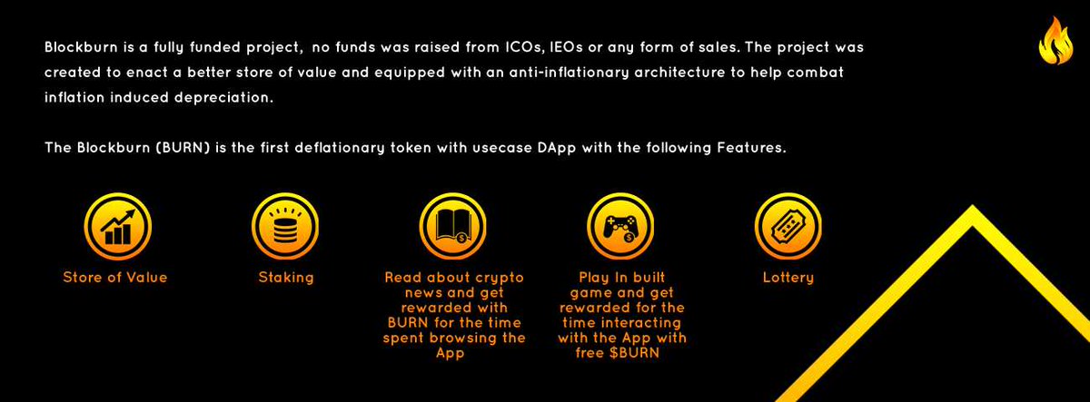 BlockBurn BURN Token is a Deflationary token with initial supply of 2 Million and with technology that make the Burn rate occur In the master wallet not affecting the investors token. Self funded and with amazing community BlockBurn will surely change the way crypto space enthusiasts see the Deflationary tokens one thing that is a indubitable is that the $BURN TOKEN is the first with Usecase App,listed in the Top Exchange and with huge Community backing the Project.