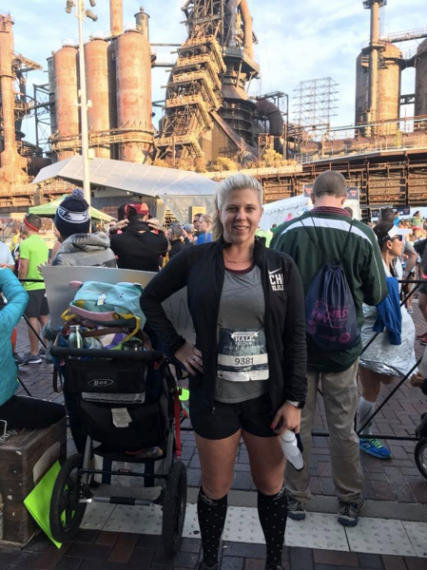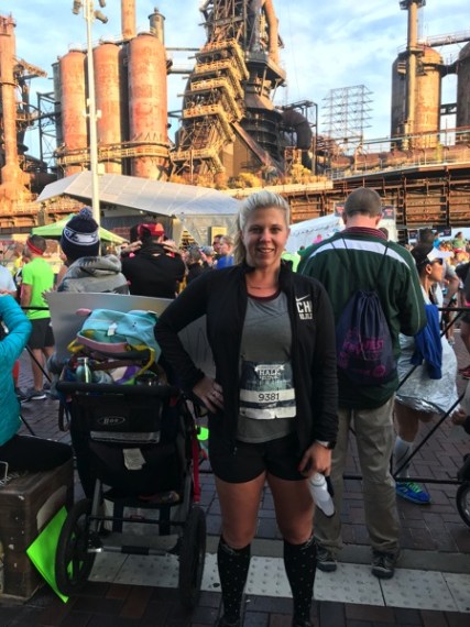 The 5K/10K/half all started at the Steel Stacks area, and the 5K went out through the back streets … and over the Fahy Bridge (which we all developed a super love/hate relationship with throughout the weekend), straight into a sweet little hill.