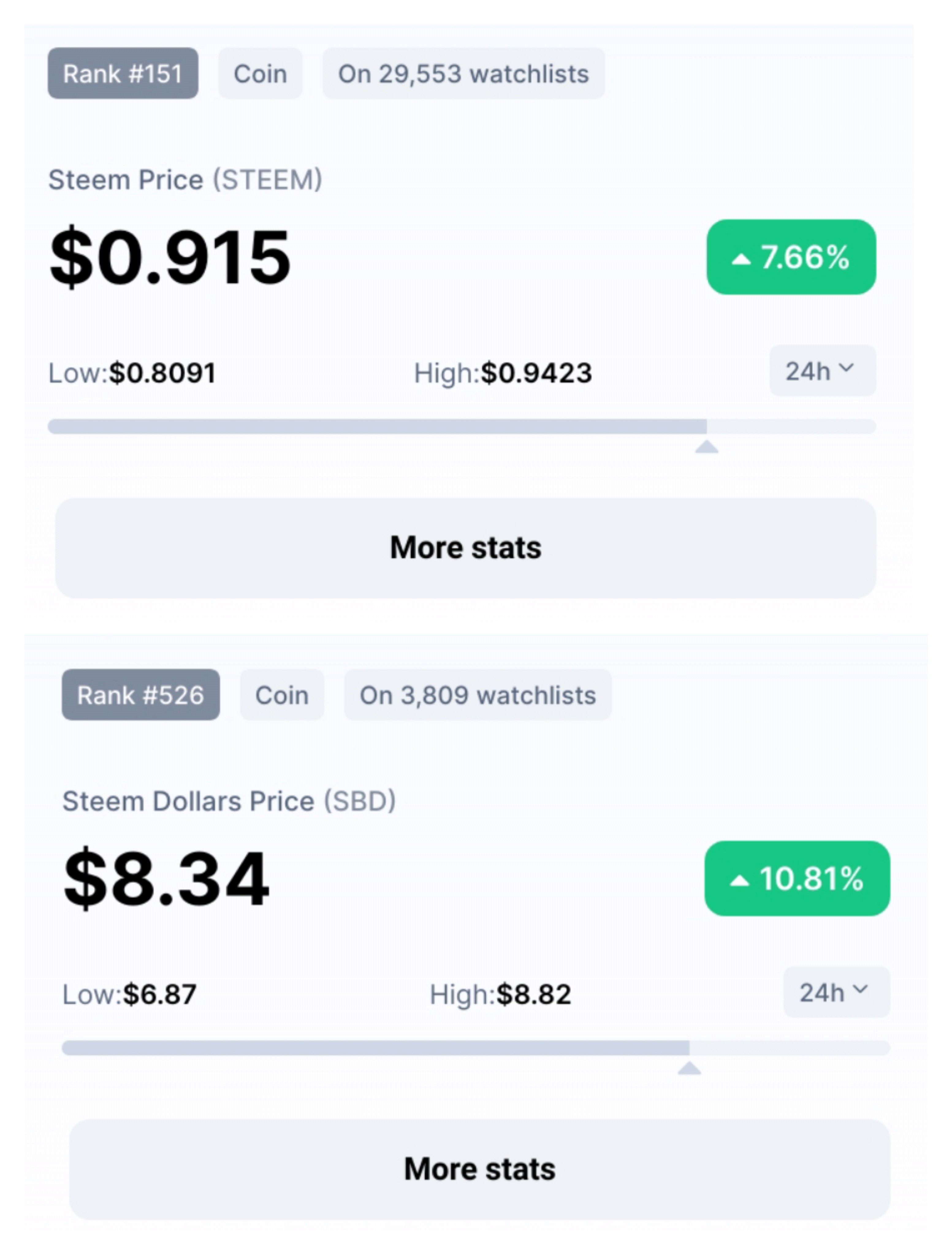 STEEM and SBD Price Today(27/04/21)apenny (59)in #steem • 5 years ago It seems most Crypto today are on Green. STEEM and SBD joined as well. Though STEEM is still below $1. STEEM with 7+% increase while SBD was up by 10+%. #sbd #steemit #marlians #apx #zzan #actnearn