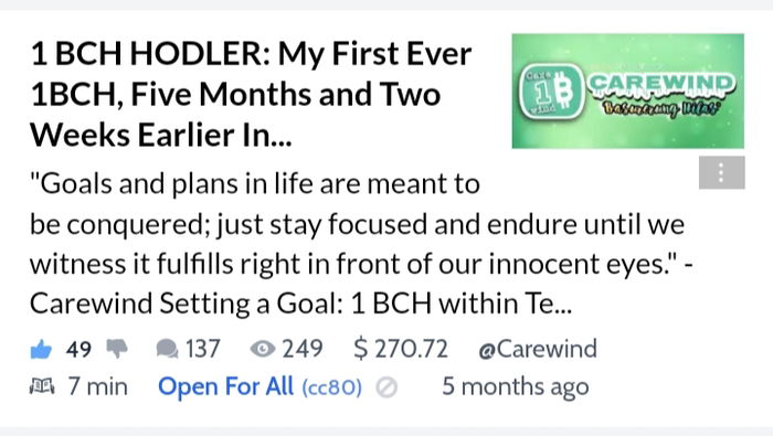 This achievement is special to me and could have been extra special if unexpected phenomenon happen, but still grateful for the life and now looking forward to and patiently waiting for some wonderful projects and updates in Bitcoincash Community. I'll be more serious now with holding and the goal for this year is to hold as much as I can in my own pace and not stress myself to get to higher highs in a short period of time but rather taking it one step at a time. I will try my very best to walk the walk and never make an excuses and detours along the way.