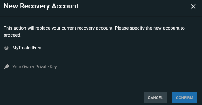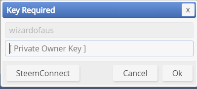 Necesitará la clave de PROPIETARIO/MAESTRA para autorizar esta operacion. Actualmente sólo se puede introducir la llave directamente, y solo steemconnect está disponible para esto (aún no hay un ajuste para steem-keychain).