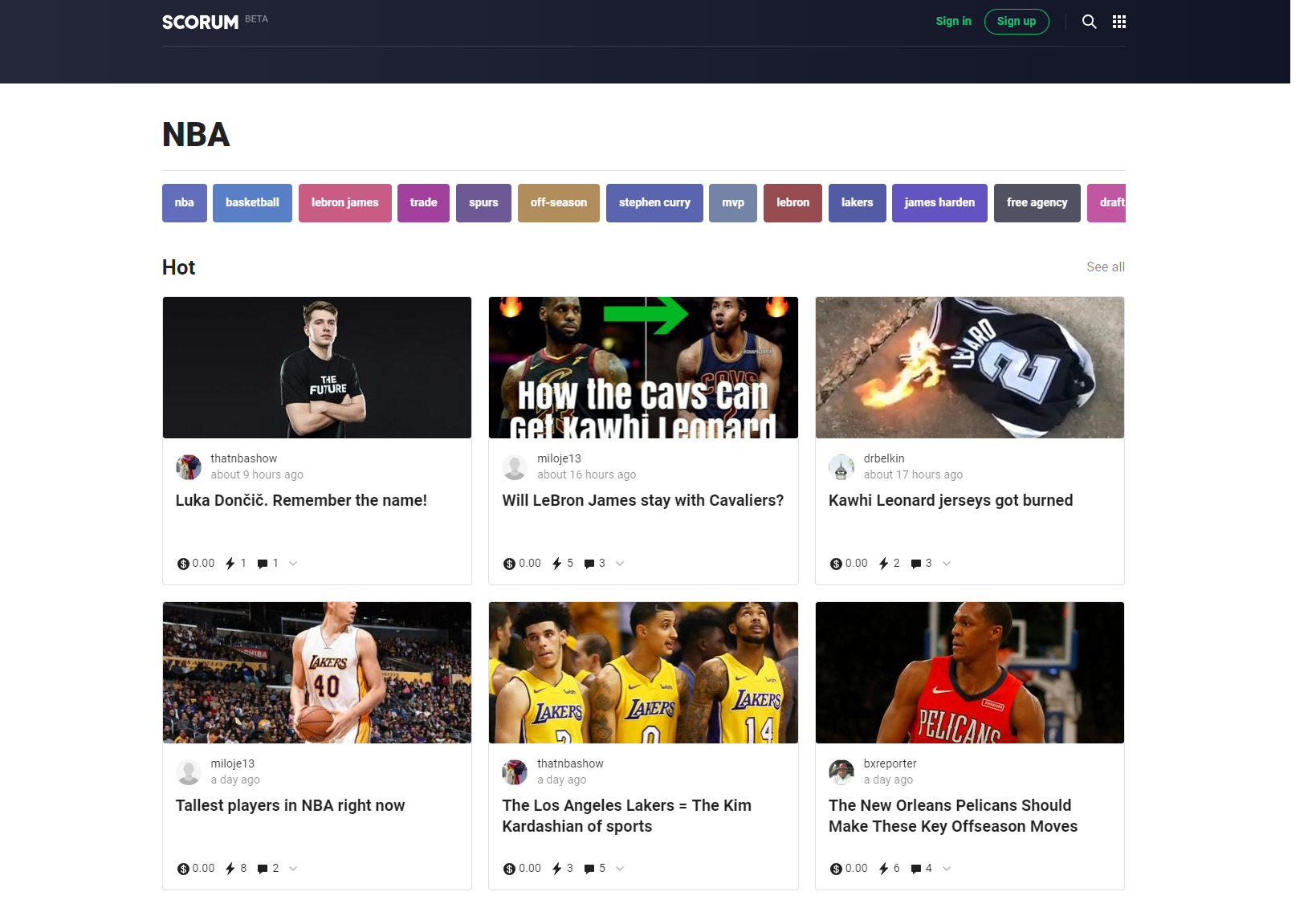 Scorum team did very good job in my opinion and I really like how Scorum looks. This is page dedicated to NBA basketball: