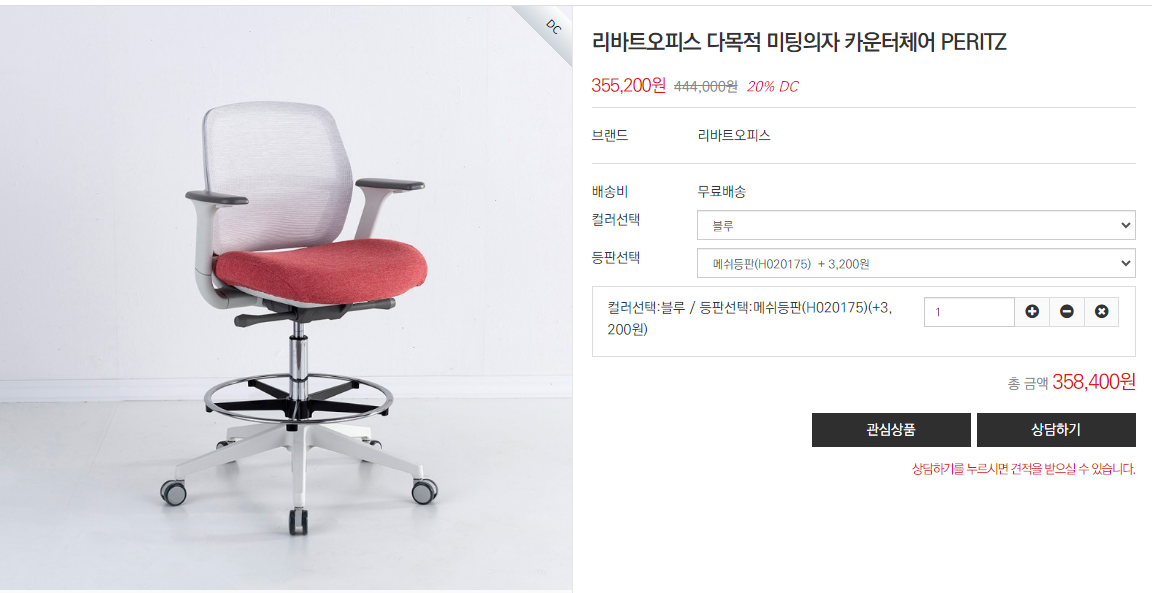 리바트오피스 다목적 미팅의자 카운터체어 PERITZ라고 의지 이름도 길다.