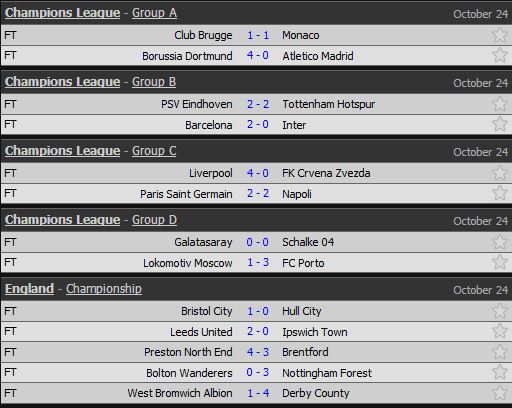 Latest Champions League Result 24/10/2018