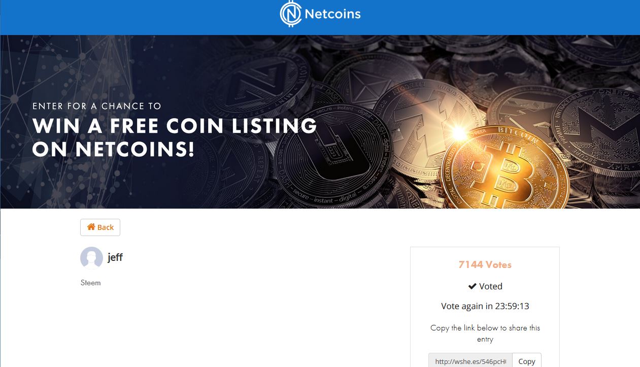 Getting Steem listed on Netcoin Details: