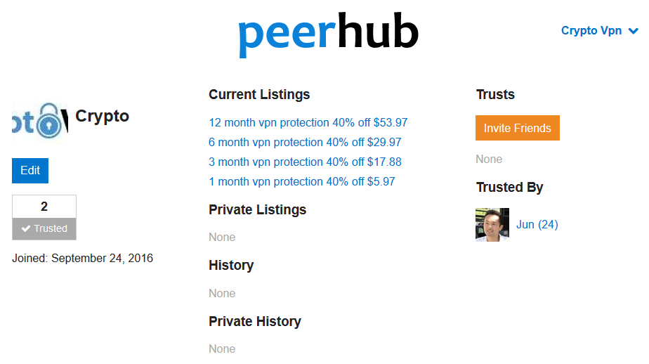Cryptovpn is now selling vpn services on peerhub.com for steem
