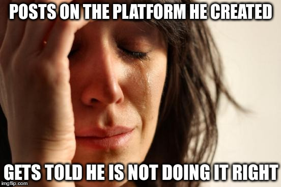 #steemittag. People were posting things that had nothing to do with#steemit. On the other hand, this is an analogy very much related to an ongoing situation related to#steem, or more specifically, the intellectual property thereof.I don't remember if he ever specifically downvoted based on the steem tag, so fair enough. I don't really care about 'tag abuse' currently anyway, as the UI for tags makes it not very usable. If I were to care about tag abuse I would have downvoted a ton of posts over it as such abuse undermined a couple of initiatives I was trying to support such as TIL. Hopefully the upcoming communities feature will be a better way to organize discussions on a particular topic.
