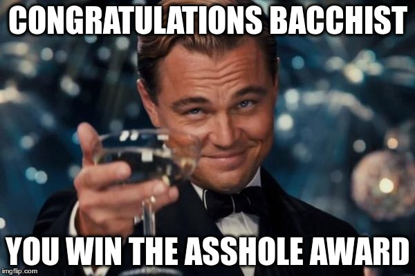 "Argument" started at "My rant on the millenial left..by schattenjaeger" because he made totally unreasonable claims and left!!! I don't like leaving stones unturned :| so he didn't argue his statements and he never will.I will correct my opinion of you, dear @ bacchist sorry for the bad opinion I have of you, you have contributed to the community, but my respect is earned. Not in Power, but in truth.