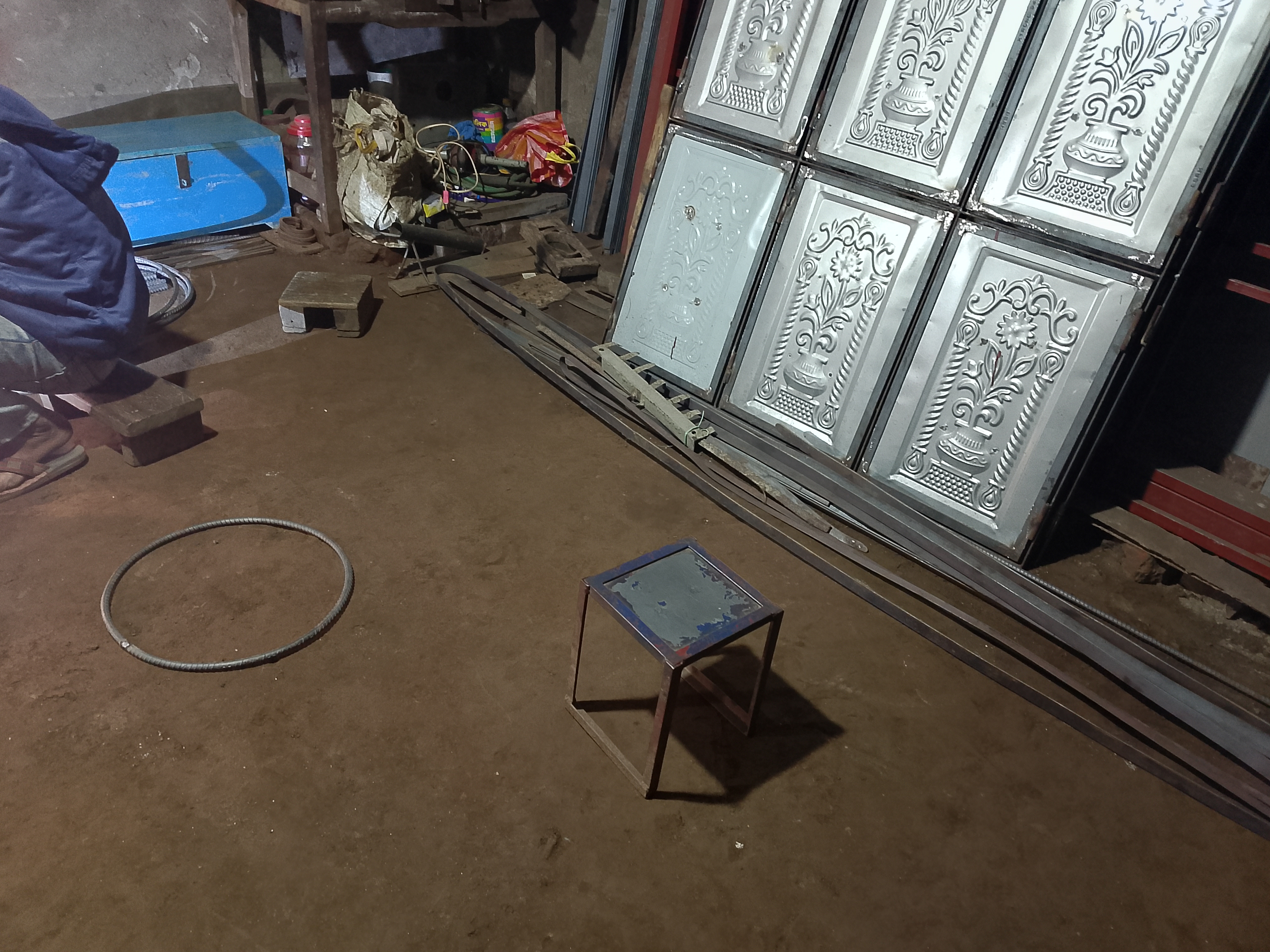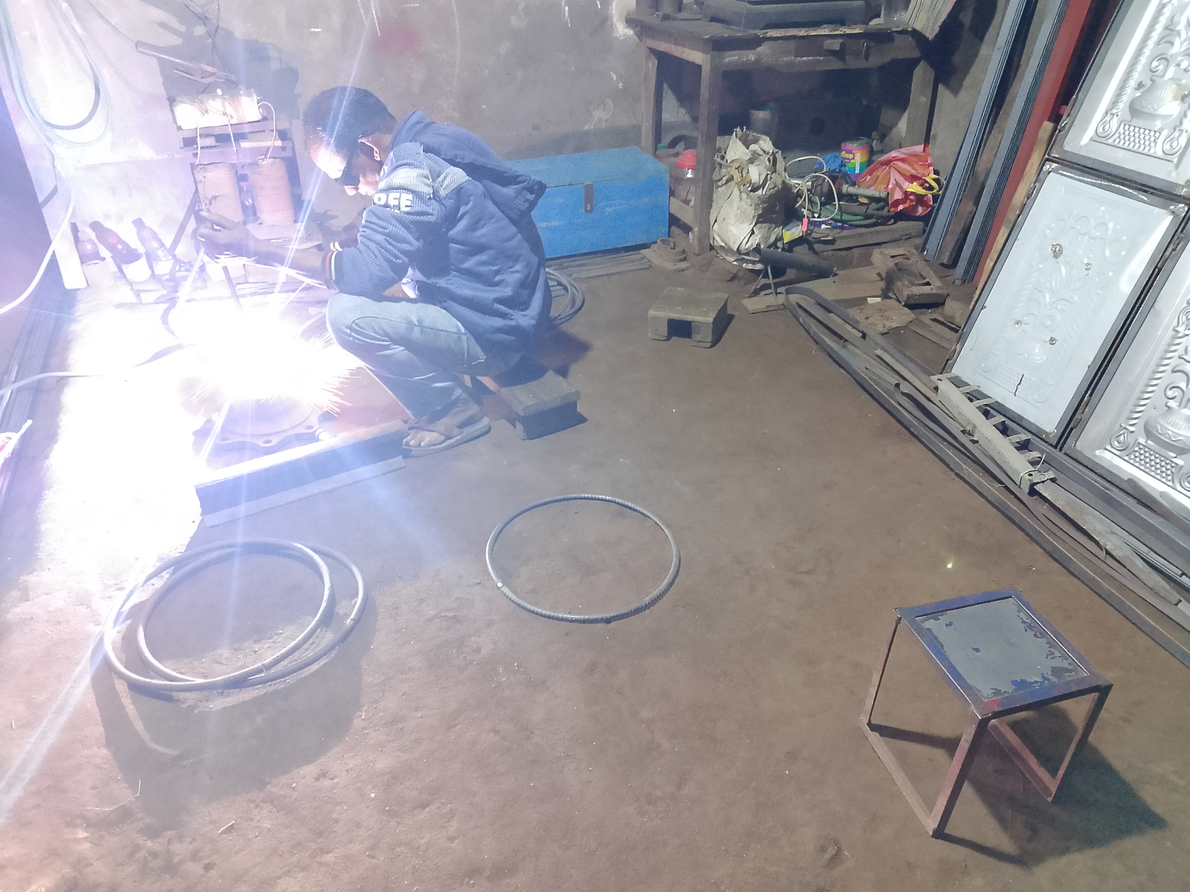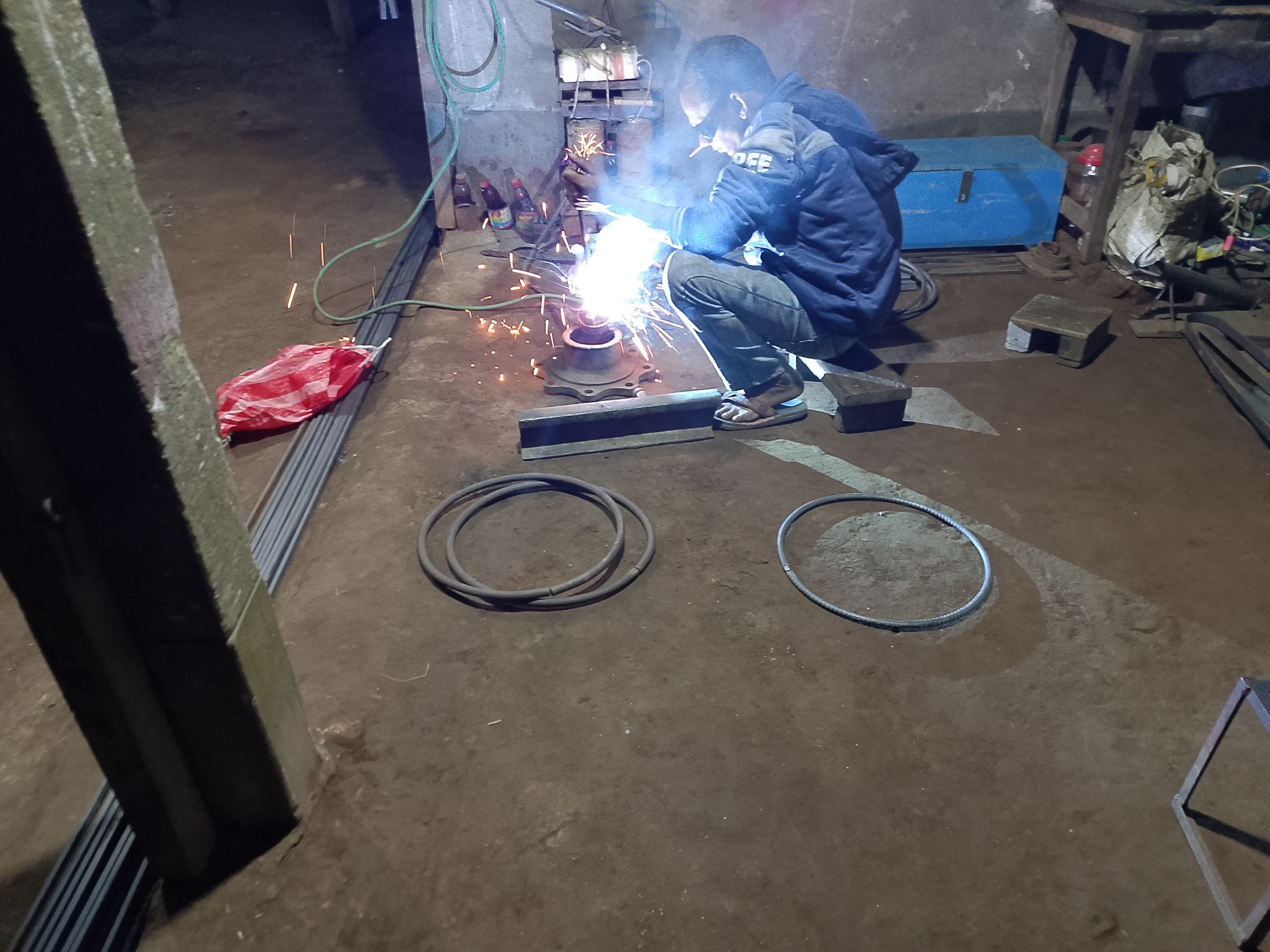 At the welding shop, he was wearing protective glasses while working because sparks come out during welding, and they cannot be looked at directly. That is why he used the glasses and welded everything properly. He was also making various other steel items. After getting my welding done, I left the shop and returned home and kept the item there.