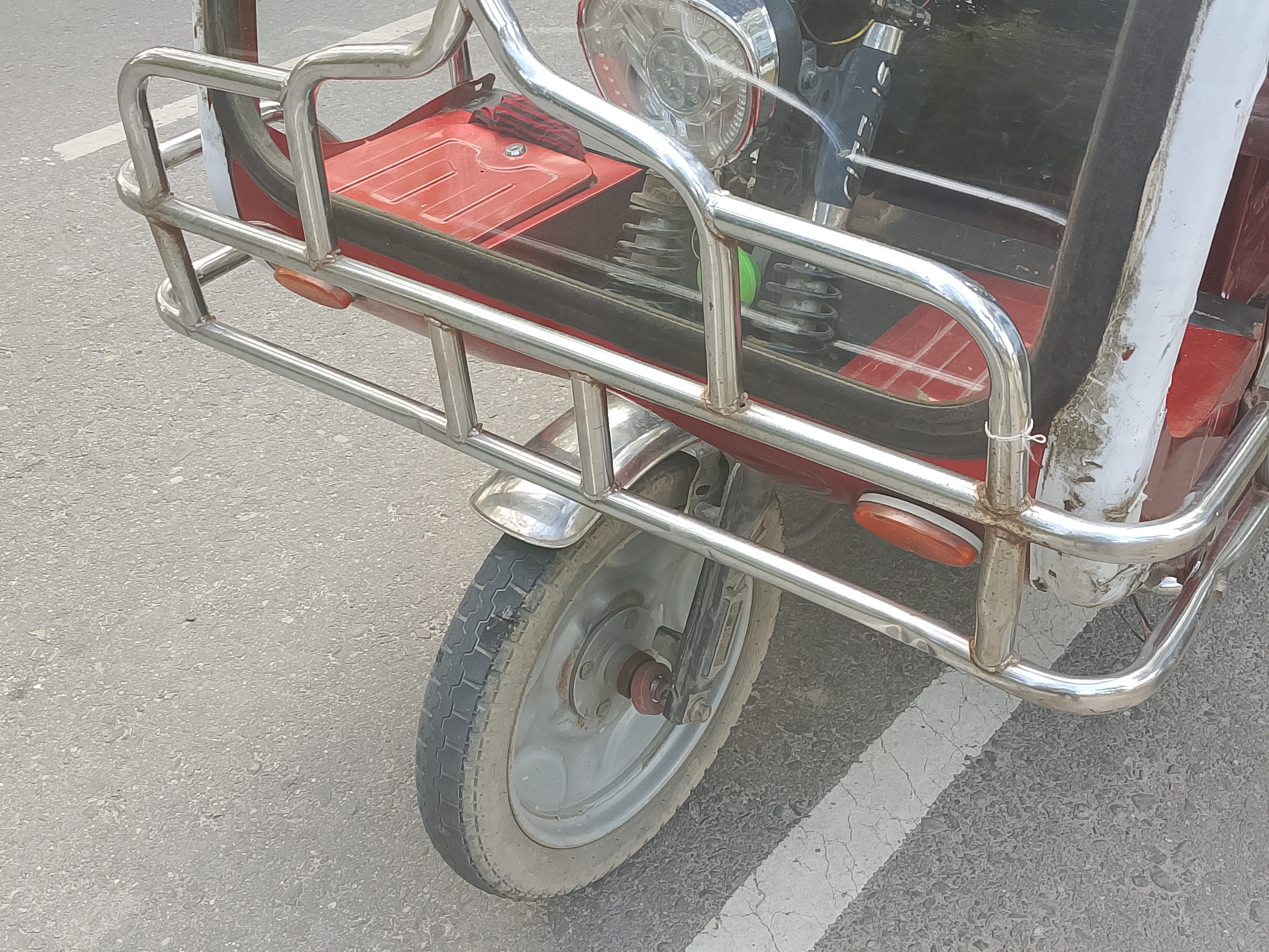 This is the front part of a vehicle. A metal structure has been installed at the front, which is made of steel and nicely crafted by someone. The purpose of adding this item to the front of the car is to protect the original plastic parts of the vehicle in case it hits something.