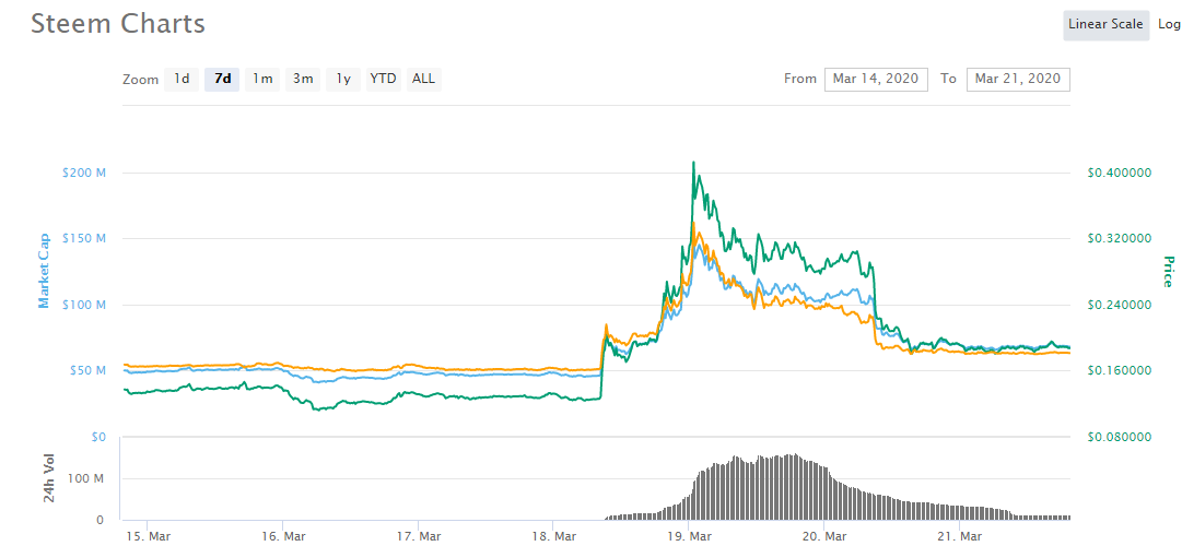 After the price of STEEM shot up due to the hard fork, the price has since come falling down drastically losing over half of it's value. Unfortunately, most of my STEEM is powered up, so I will have to unload slowly over the upcoming 13 weeks. I should've seen this coming and reacted sooner, but there's no point in crying about it now. I only hope the price doesn't get cut in half again before I finish selling! I'm still above water on my STEEM investment, but not for long...