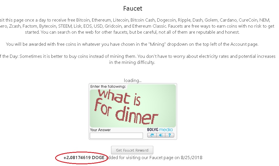 Observamos la potencia y el tiempo de minado en la nube el cual nos marca 24 horas. Una vez pasado ese tiempo, podremos recomprar potencia por 24 horas, y adicional resolver el captcha del faucet para obtener mas saldo diario.