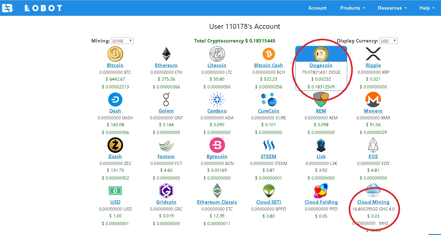 Dejaremos minando en la nube 24 horas para acumular Doges, una vez que tengamos un saldo hecho, vamos a rentar GHS 4.0 para 24 horas. Nota: La renta de GHS 4.0 de Eobot nos da mas GHS para minar solo por 24 horas pero nos permite acumular mas criptomonedas.