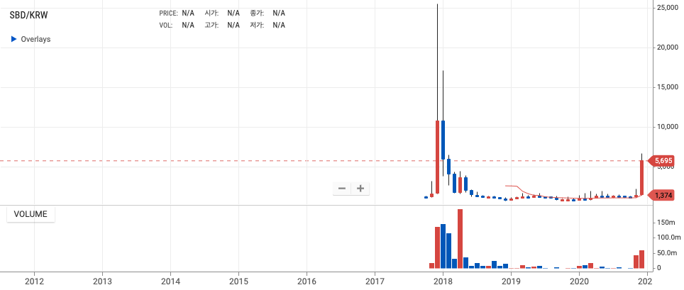 image: SBD/KRW chart from Upbit