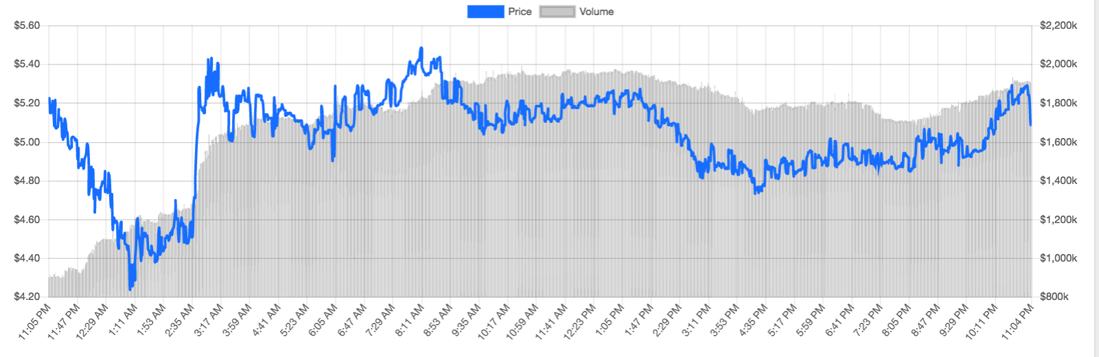 it's gone UP 2.41% in the last hour...currently at about $5.00