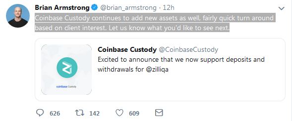 "Coinbase Custody continues to add new assets as well, fairly quick turn around based on client interest. Let us know what you'd like to see next."