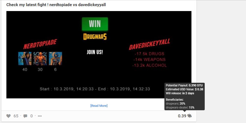 LOL @Drugwarsio takes a 35% beneficiary cut of the post generated through their platform. It's like if you where printing money and decided to install a second printer 🤣🤣