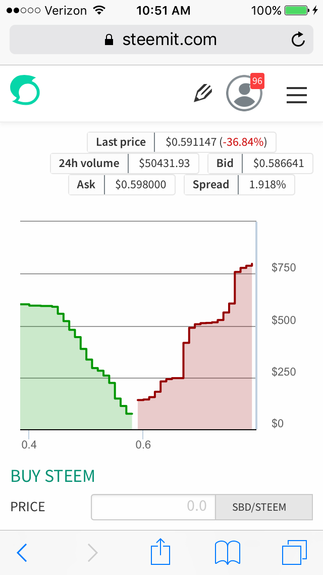 That's price versus SBD rather than USD. SBD is selling at a premium on bittrex atm.