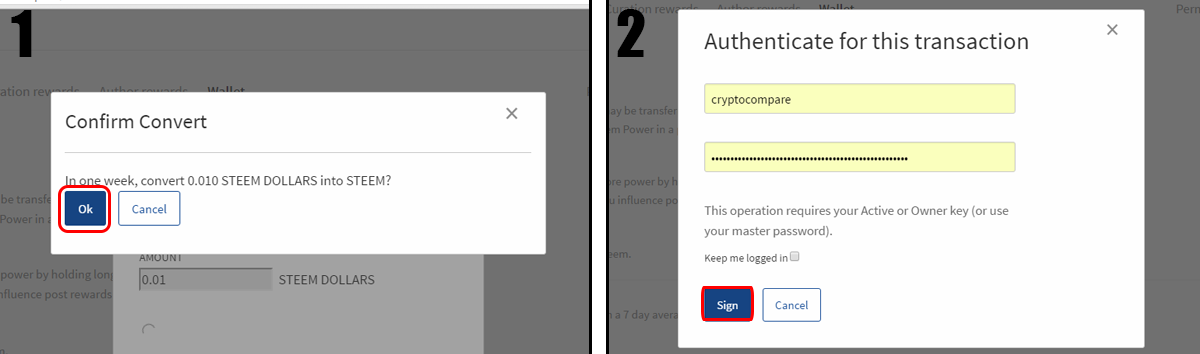 Step 4: Click "OK" to confirm amount and sign into your account to authorize the withdrawal.
