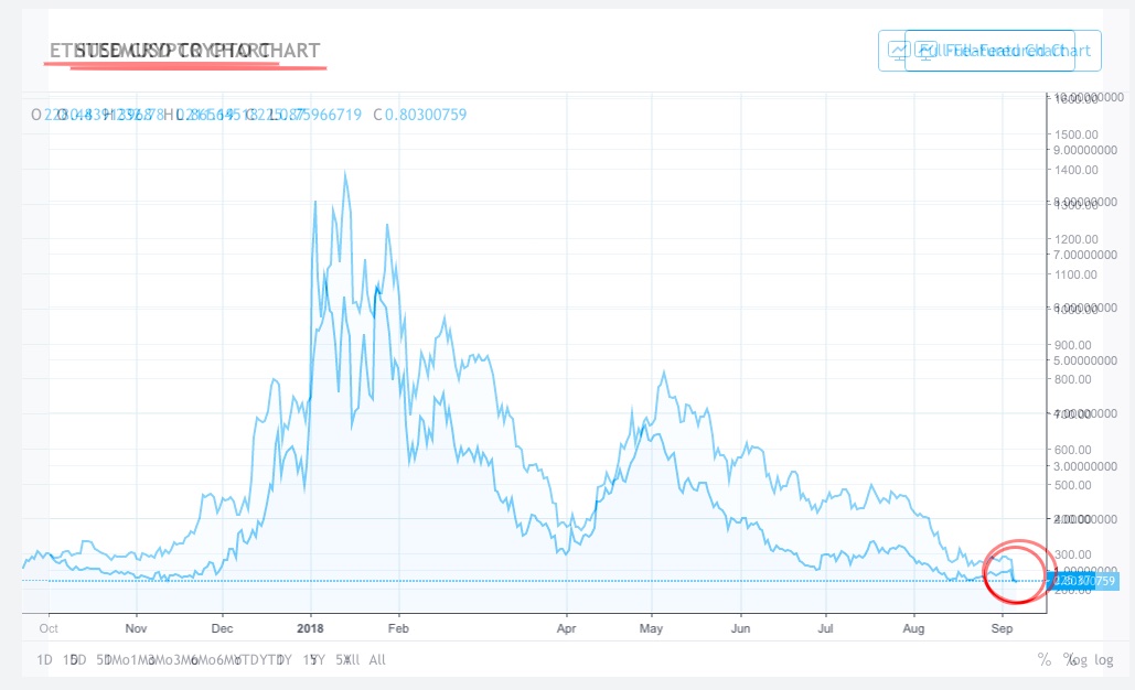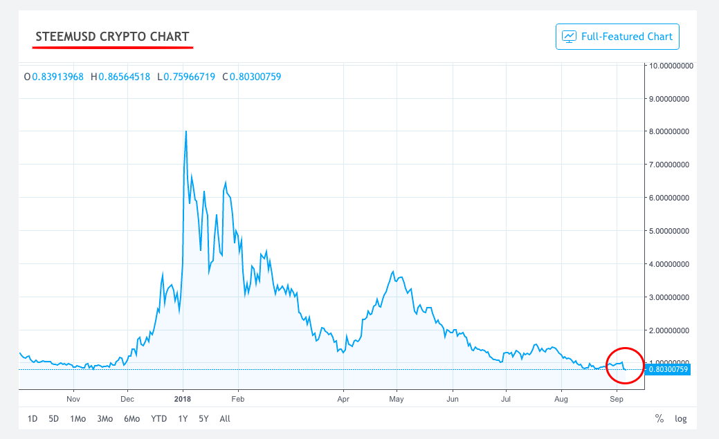The highest point Steem reached was $8 in January and now it is at 80 cents.