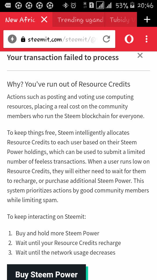 - I can't make more than three consecutive posts . Resources are costly, so resource credits are being allocated in terms of steempower. Those with less steempower probably don't have that much to post or content that great worth sharing so they're allocated a few resource credits compared to those with high steempower. When your resource credits run out you either wait for them to recharge or you buy steempower. It's time to start choosing your posts wisely. This affects voting as well.